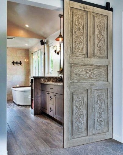 Hand-Carved authentic Door, Antique Barn Doors, Custom Size Interior Sliding or Hinged Door, Solid wood Double or Single Distressed Doors