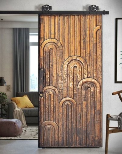 Hand-carved Modern Barn Door, Custom size Entrance Front Door, Double or Single Sliding interior Exterior Doors, Contemporary luxury Door